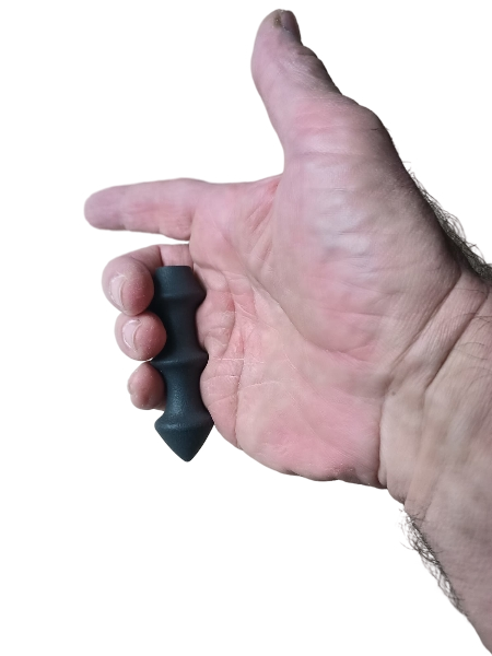 Áno niekto by mohol namietať, že je to menší kubotan, ale nie je to to isté. Shotjalm sa drží ako meč maličkom prstenníkom a prostredníkom. Tento úchop je veľmi silný a jeho prepracovaný tvar tomu ešte viac napomáha. (spomeň si na to keď nevieš otvoriť vrchnák od fľaše, ktoré prsty použiješ).